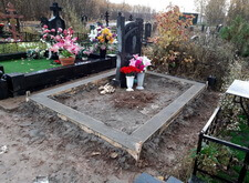 В данном заказе нам предстояло провести полный комплекс работ по благоустройству места захоронения. В момент нашего приезда на участок на могиле находился лишь широкий памятник и разобранная ограда, которую нам и предстояло разместить по периметру могилы.