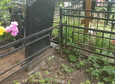 После того, как наземное покрытие высохло после замывки, установили новое надгробье и окрасили ограждение.